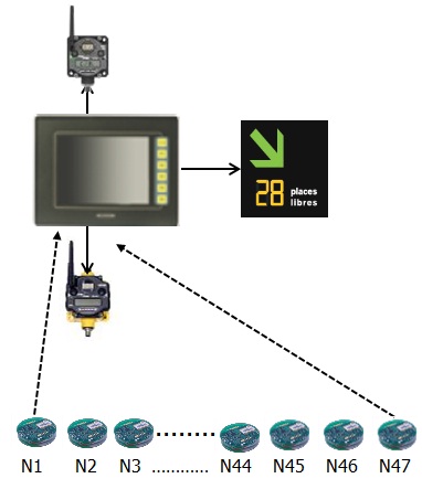 由于單個停車場的車位有時可以達到幾百,甚至上千個。所以為了能夠讓無線網絡覆蓋整個停車場,需要對停車場進行區(qū)域劃分,形成若干個獨立的子網絡。每個子網絡由一個邦納SHP控制器進行數(shù)據預收集。同時將本區(qū)域空車位數(shù)量傳送給LED引導屏,方便車主選擇停車位。