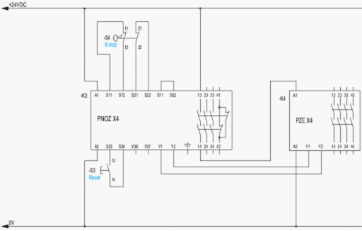 若是使用單通道信號輸入,進入安全繼電器,那么這個控制電路的安全等級是在2級,如圖4所示。