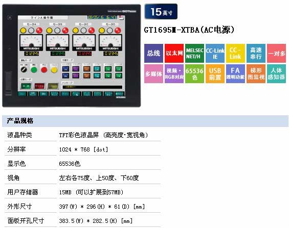 GT1695M-XTBA | 15寸XGA,65536色,AC電源,可擴展視頻和RGB | 少用 |